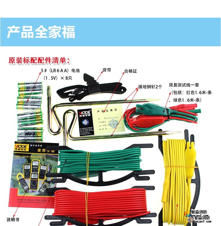 測(cè)試線長 | 3條:紅色15m,黃色10m,綠色5m各1條 |