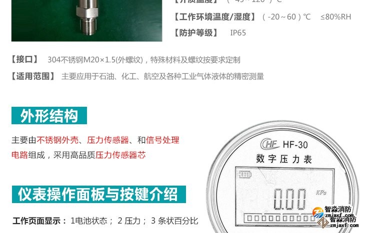 數(shù)字壓力表量程0-20MPa,精度0.4級測試消火栓用30. 細水霧末端試水裝置壓力表量程:0MPa~0.6MPa;精度:0.4級安裝在系統(tǒng)管網(wǎng)或分區(qū)管網(wǎng)的末端,檢驗系統(tǒng)啟動。